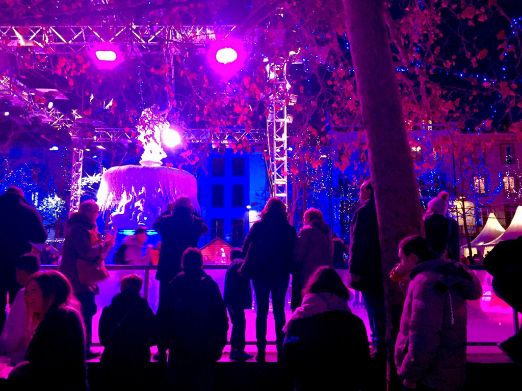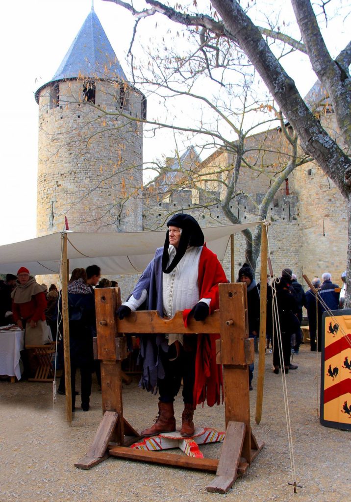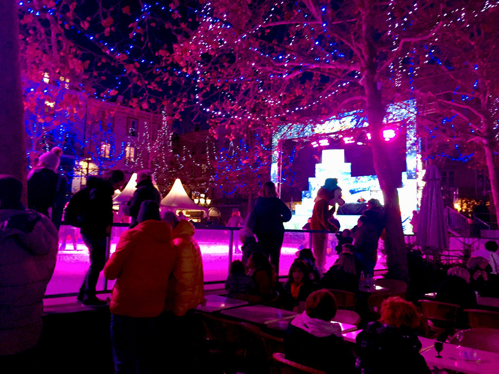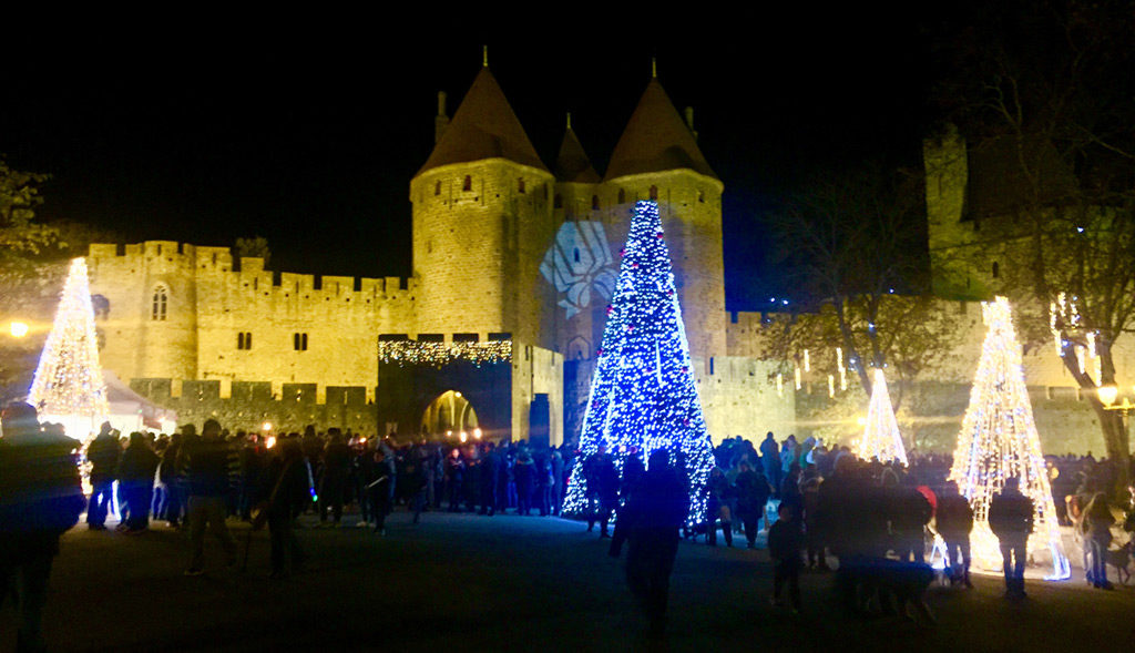 We soon realized that we couldn’t leave the dogs as long as we thought we would be able to, so any planned road trips that were too long had to be abandoned. We could only be gone about 4-5 hours so we stayed local in the Languedoc – heading to small villages nearby, or off to Carcassonne, Narbonne and Toulouse. This time Carcassonne was all decorated for Christmas with the Feast of St Nicholas – a medieval fair and a candlelight parade through the city at night. There was a Christmas market in Bastide de St Louis, the city down the hill from Carcassonne. An ice skating rink dominated the square, festive music was blaring with red & blue Christmas lights bathing the entire area in a purple glow. Booths in the market served vin chaud and foie gras, a speciality of the region.